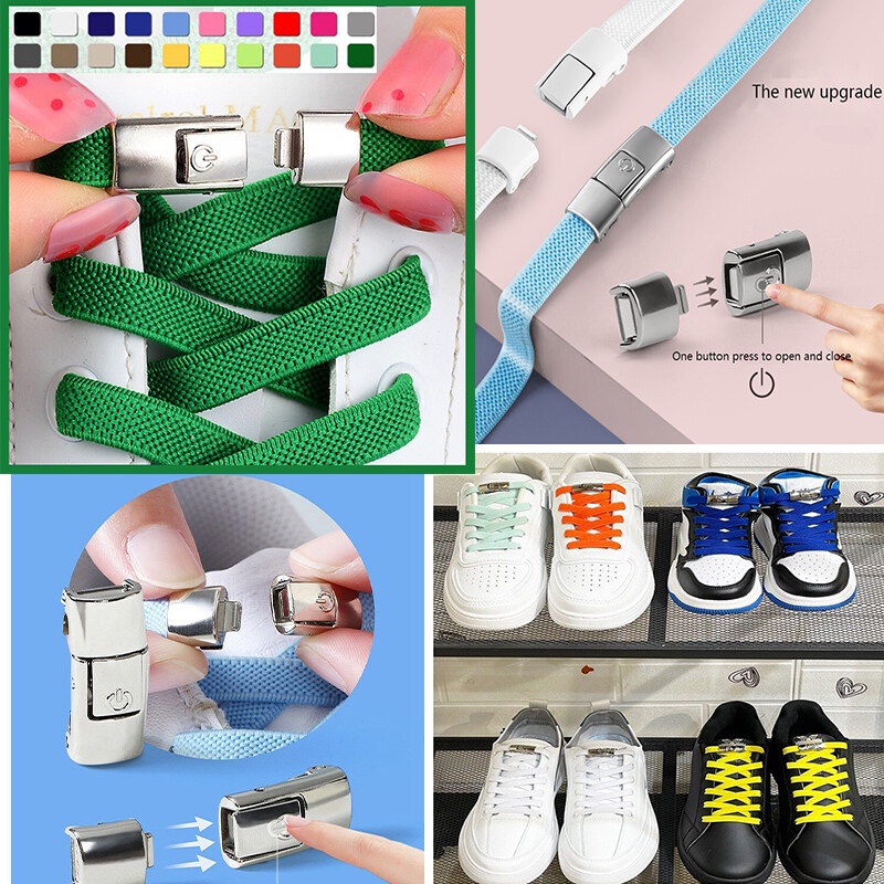 20color Press Lock Shoelaces Without No Tie Shoe Laces Kids Adult Shoelace for Shoes