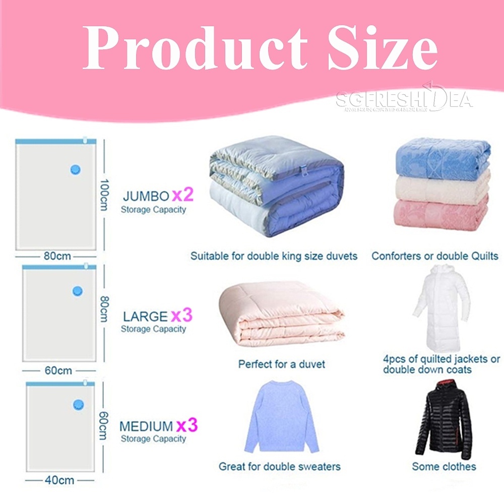 Appearance:good Performance:good Quality:good Packed individually and i’m loving it! Stoked to sort out my blankets and clothings to fit in to my cabinet. The quality is an A+ which is thick that comes with a pin for sealing. Great buy and highly recommended! ??????