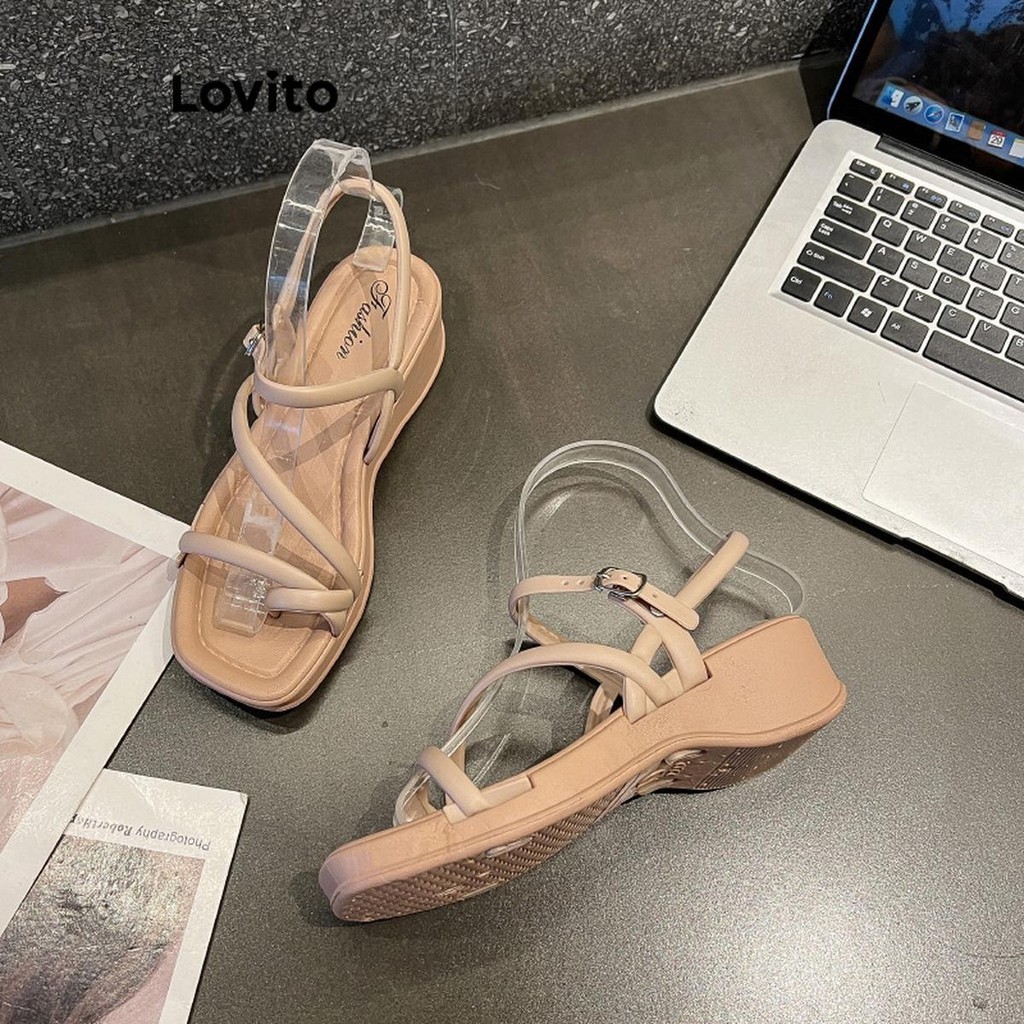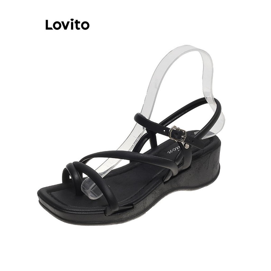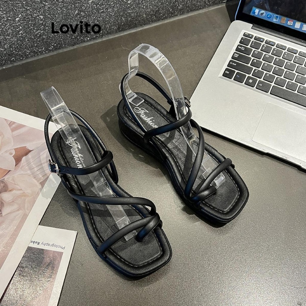 Lovito Casual Plain Tie Front Thick Soled Shoes Straps Heel for Women LFA26059