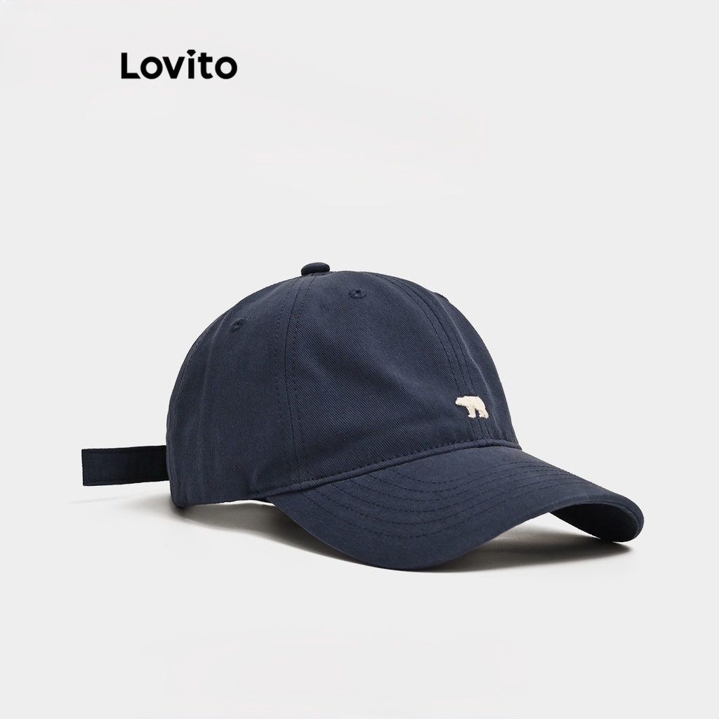 Lovito Sporty Plain Embroidery Pattern Cupola Bent Brim Polar Bear Hat for Women LFA08409 (Army Green/Khaki/Off White/Navy Blue)