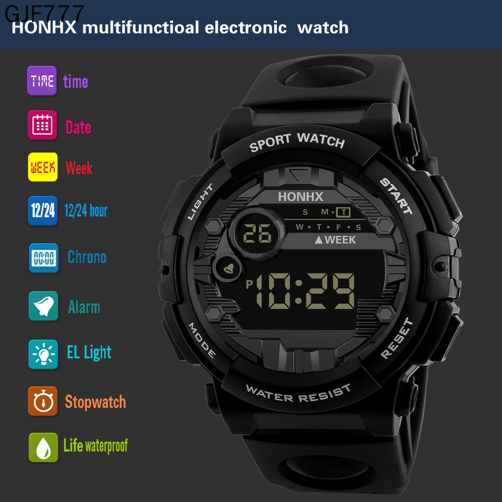 True to description: true Material: plastic material plastic Color: black The product is ok, has decent packaging, wish the shop has many orders, if there is a need, I will support the tip shop. The watch is suitable for small hands, small faces.