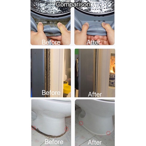 Performance:"真的那么神奇吗?" my hubby asked. Few days later he is wowed. First 2 photos are before application, next 2 photos after application. I applied about 3 times, wiped and reapplied after a day or two. It's about 98% cleaned now. It works also on the corners of caesarstone. Happy that the mold is no longer an eyesore now.