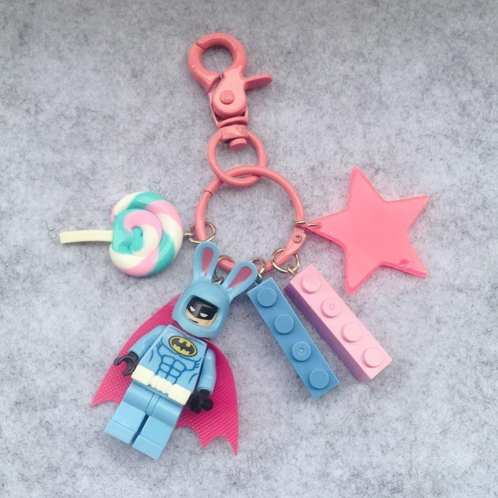 PEONYTWO Keychain, Small Figures Pink Key Ring, Creative Building Blocks Fairy Batman Heroes Key Lanyards