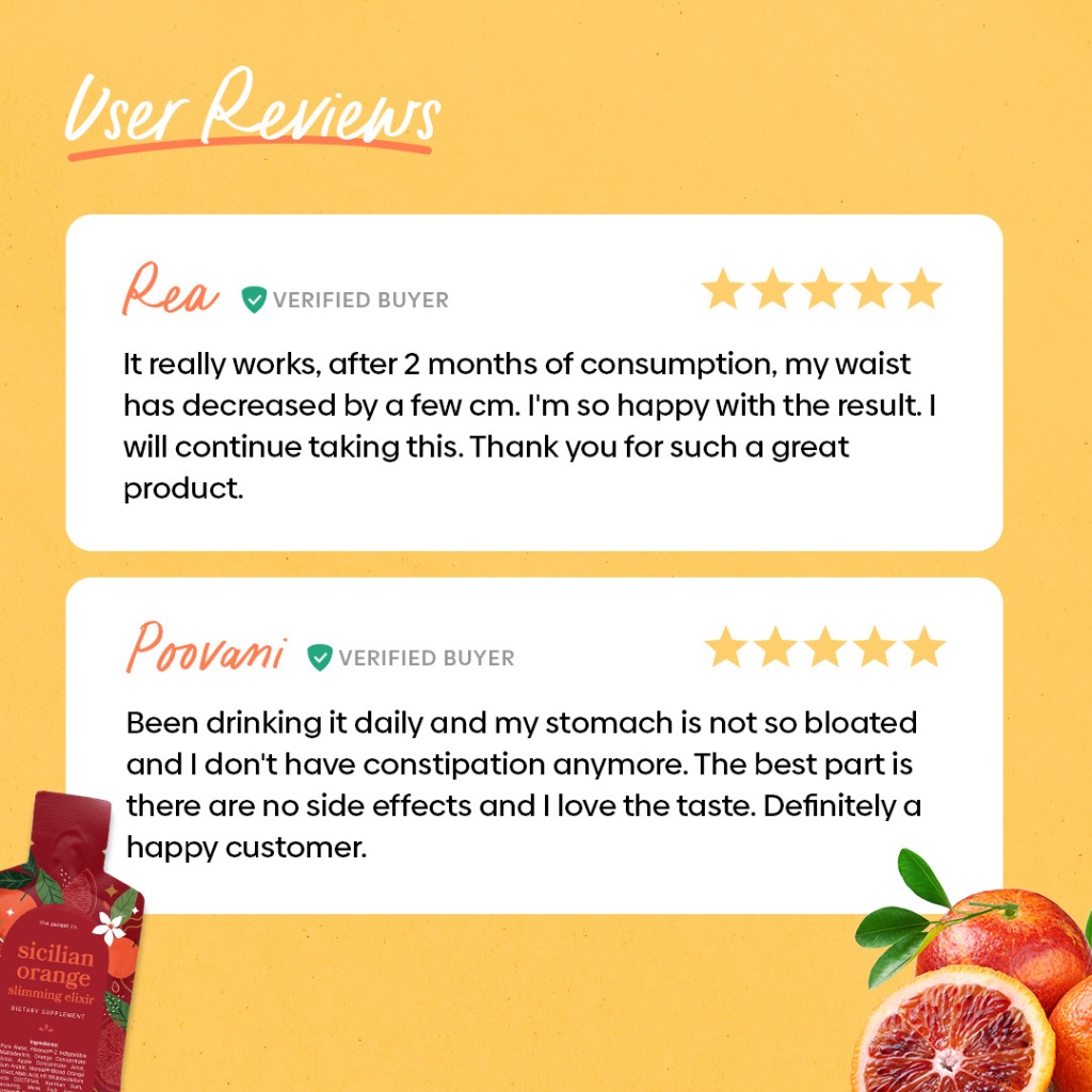 Suitability:great taste Performance:good Have been taking these for half a month now. They taste good and is a great daily supplement. It does help to reduce my tummy bloats. Can’t tell if it will reduce my waist size yet. Will continue to take it and hope to see the results after some time.