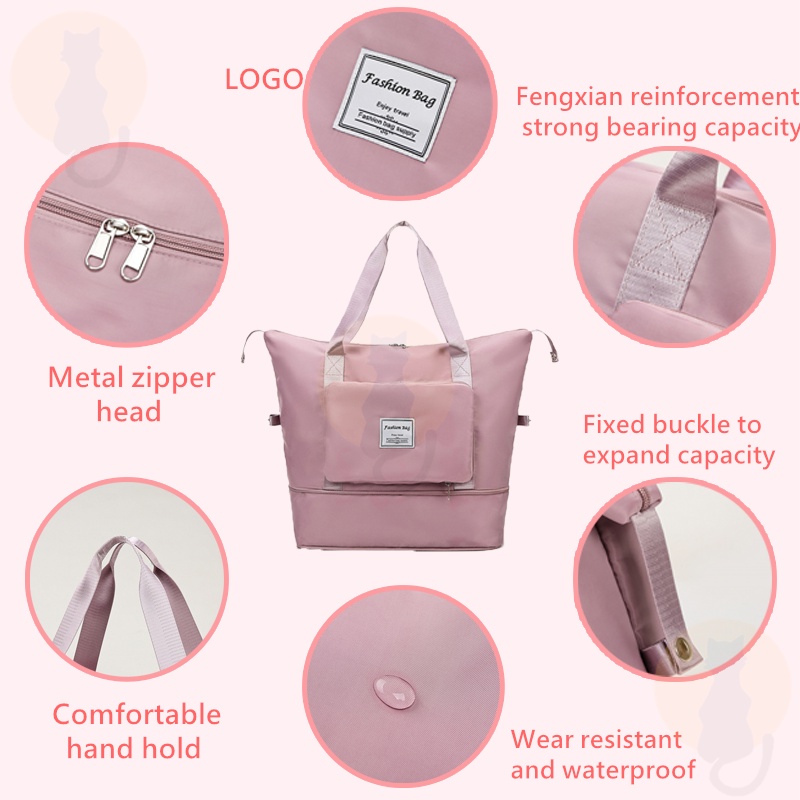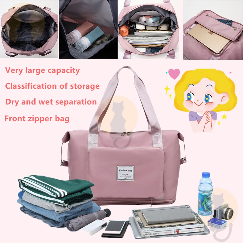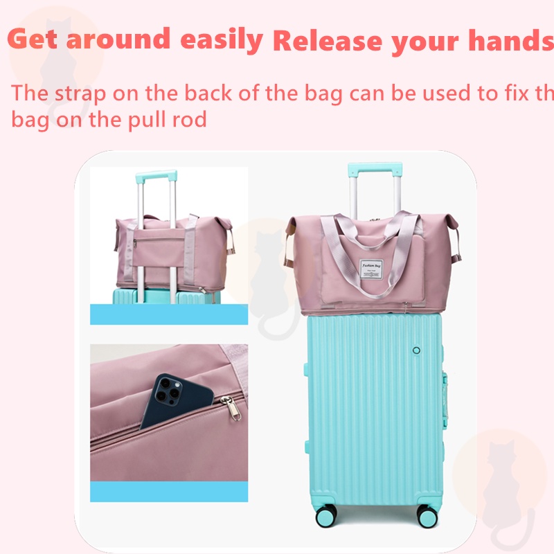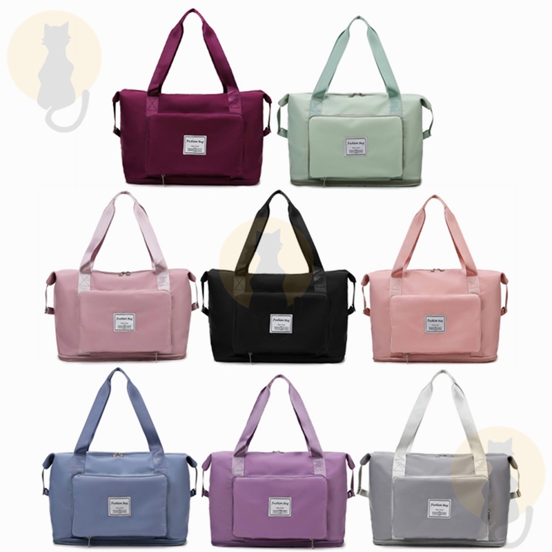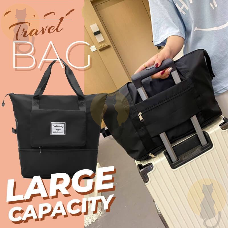 Colour:black Material Quality:good Neat foldable travel bag, convenient for carrying shopping loots and is expandable to fit more stuff. There is also a slot to put through the luggage handle ?